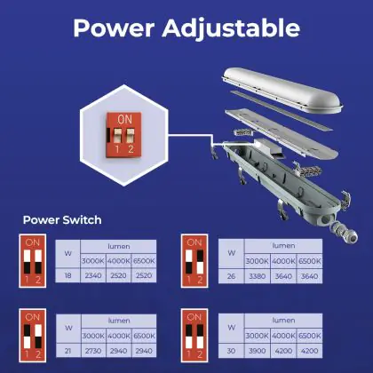Descrizione Confezione Multipack 10x Noxion Stagna LED Poseidon V3.0 18-30W 2340-4200lm - 830-865 CCT | 120cm - Cablaggio Entra/Esci (5x2.5mm2)
