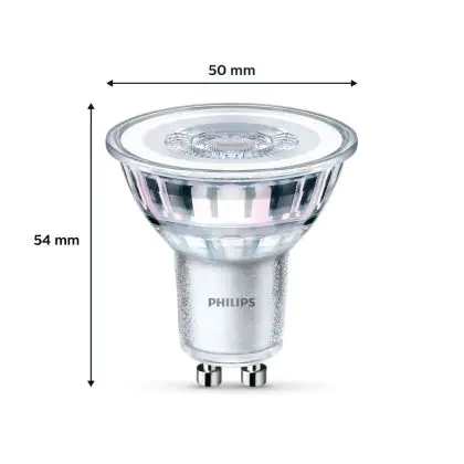 La Confezione Multipack 2x Philips Faretti LED GU10 PAR16 4W 275lm 36D - 840 Bianco Freddo è perfetta per la sostituzione della convenzionale Lampada alogena W GU10 con colore della luce 840 Bianco Freddo. Questa Lampada ha una forma Spot con un diametro di 50mm. I due perni sono distanti tra loro 10mm. Questa lampada funziona con la 220V-230V e quindi non ha bisogno di trasformatori. Passare a LED ti offrirà molti vantaggi!