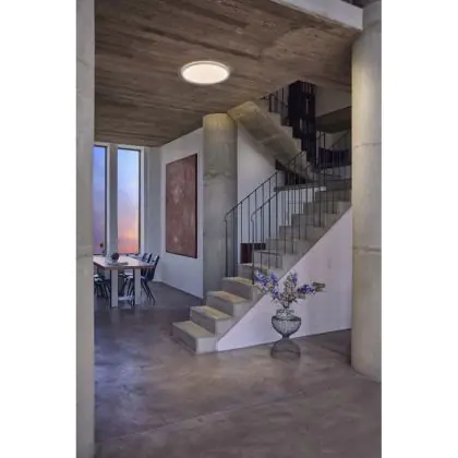 Per scegliere un apparecchio di illuminazione bisogna anche considerare dove verrà installato. Per esempio la luce di 2700 Kelvin (bianco molto caldo) e 3000 Kelvin (bianco caldo) creano un’atmosfera rilassante e piacevole. Questa tonalità è quindi molto adatta ad ambienti accoglienti o a zone generiche come corridoi, ascensori, disimpegni o pianerottoli. Una luce di 4000 Kelvin (bianco freddo), invece,è più luminosa e fresca ed è quindi adatta come illuminazione funzionale in uffici, aziende, scuole e biblioteche. La temperatura di colore di questa plafoniera LED è .