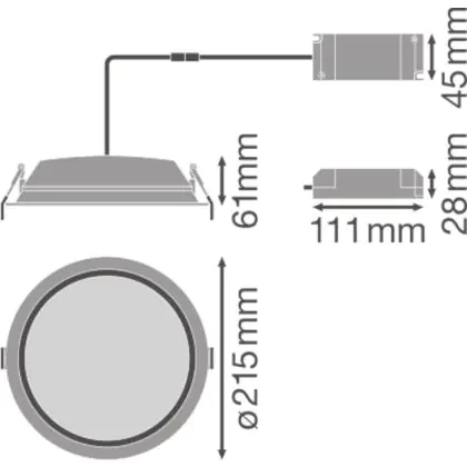 Descrizione Ledvance Downlight LED Alu DN200 25W 2370lm 100D - 840 Bianco Freddo | 215mm - IP44 - Dali Dimmerabile
