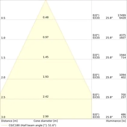 Ormai le lampade LED sono disponibili in varie temperature di colore diverse, che può essere più o meno calda. La scelta del colore dipende principalmente dall'area dove verrà installato un apparecchio luminoso. Leggi il nostro blog per maggiori informazioni. Questa lampada emette una luce 3000K - Luce Calda e il suo indice di resa cromatica è 90-99 - Perfetta resa cromatica Ra.