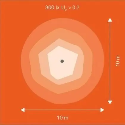 Questo apparecchio può essere usato sia in spazi interni che in spazi esterni, poiché ha indice di protezione contro l'ingresso di acqua e polvere IP66. In generale, un apparecchio con IP44 è resistente a schizzi di acqua e umidità, e può quindi essere installato in spazi esterni molto umidi o esterni riparati, come sono una tettoia. Un apparecchio che invece verrà esposto a intensi getti di acqua deve avere almeno IP54. Questa lampada ha anche un indice di resistenza a urti e impatti di IK08 - 5 Joule
