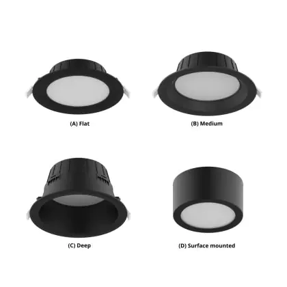 Descrizione Noxion Downlight LED Hera Piatto Nero 9W 900lm - 827-840 CCT | 132mm - Ritaglio 118mm
