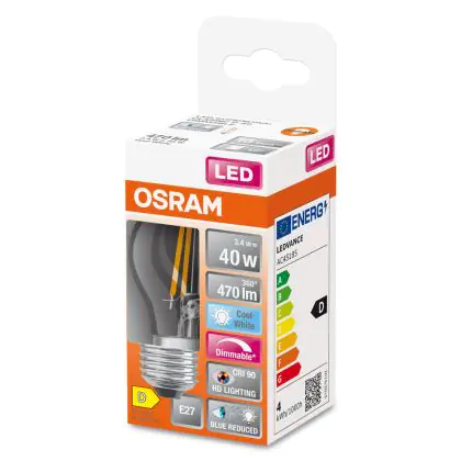 La Osram LED Superstar E27 Sferica Filamento Chiara 3.4W 470lm - 940 Bianco Freddo | Miglior Resa Cromatica - Dimmerabile - Sostitutiva 40W è la perfetta sostituzione per la tua lampada convenzionale 40W con attacco E27 grazie alla sua tecnologia LED. Passare a LED ti offrirà tanti vantaggi!