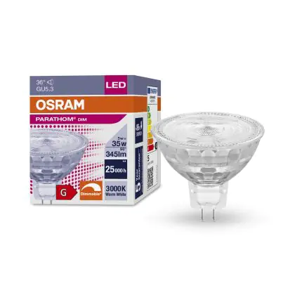 La Osram Parathom LED GU5.3 Spot Chiara 5W 345lm - 930 Luce Calda | Dimmerabile - Miglior resa cromatica - Sostitutiva 35W è perfetta per la sostituzione della classica lamapda alogena35W GU5.3 con colore della luce 930 Luce Calda. Questa lampadina ha una forma Spot con un diametro di 50mm. La distanza tra I due pins è di 5.3mm. Queste lampade hanno bisogno di un trasformatore poiché operano a 12V. I trasformatori possono essere trovati in "Accessori" su questa pagina. Qual’è il trasformatore adatto? Dipende dal numero di lampade che si vuole installare. Il nostro servizio di vendita e assistenzati ti aiutera nella scelta. Passare a LED offre molti vantaggi!