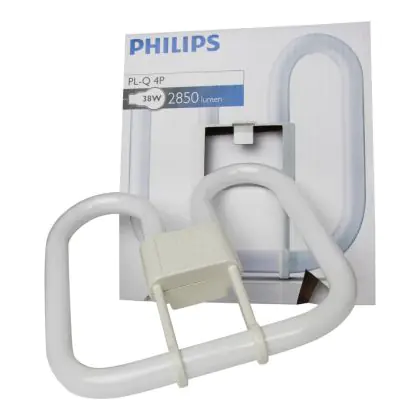 Le lampade Philips PL-Q 4P sono lampade fluorescenti a forma quadrata, a doppia D. Sono idonee per con un trasformatore elettronico, ed hanno una base a 4 pin, di tipo GR10q.