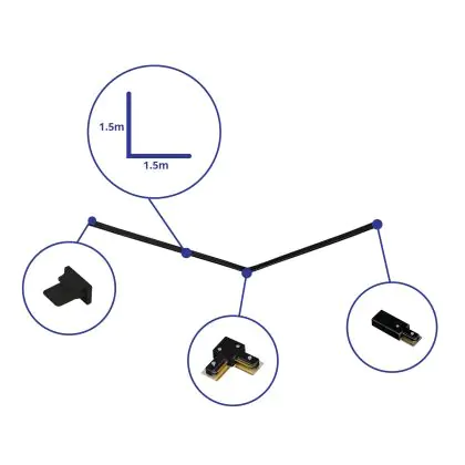 Rail Set 1-Fase L 1,5 x 1,5 Metro Nero | incl. Tappo Di Chiusura, Connettore di Alimentazione e L -Connettore