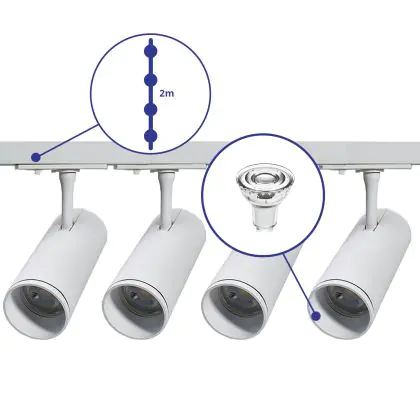 | Nome del fabbricante | Complete Straight 2-meter 1-Phase Track Set White incl. 4x Spot fixture + GU10 2700K 3W Dim – 2x 1 M | |